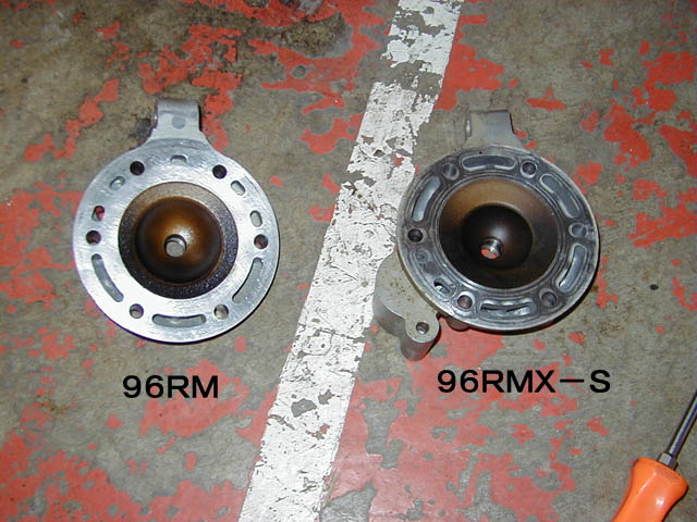 シリンダーヘッド形状。ウオーターラインが60°ほど違います | ヘッド燃焼室形状。RMのほうが容量大きそうです |