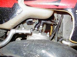 次にパーツの交換です。タンクをフレームに載せた時点で、タンクとシリンダーヘッド(サーモスタット部)が干渉してNG。ここは本誌でもレポートされていたので96RM用のヘッドに交換。RMXとRMではヘッドの形状がかなり異なり、サーモ部が無いだけでなくウオーターラインが変更になるので、ラジエターホース(ラジエターとシリンダーヘッドをつなぐゴムホース)をRM用にします。またサーモの部分の1本だけ、長いスタッドボルトが使われていますので、これも短いボルトに交換です。実物を見て初めて分かったのですが、燃焼室の形状も異なります。見た感じ、RMのヘッドのほうが容積が大きいようです。圧縮比が下がると考えられますので、ついでにレーサーのガスケットに交換します(もっとも、ノーマル状態でほとんど乗ったことが無いので、フィーリングの違いはレポート出来ません・・・)。