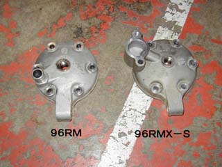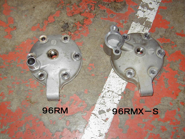 シリンダーヘッド形状。ウオーターラインが60°ほど違います | ヘッド燃焼室形状。RMのほうが容量大きそうです |
