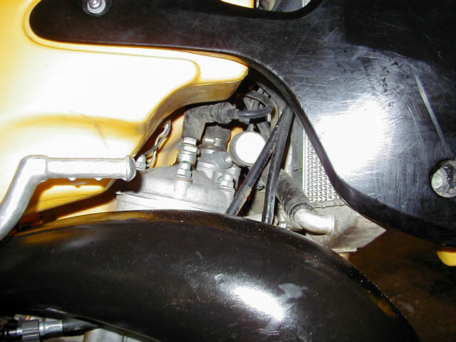 昨年暮に中古で手に入れた96RMX-S。トレッキングによく行くものの、腕のほうはまだまだなのでどうしてもバイクを倒してしまう事が多く、力が無い自分では少しでも軽量化したいところ。手始めに、重要度の低いパーツをはずし混合化をしていたのですが、春先にインターネットオークションでお手ごろ価格で99RM用ビッグタンク(IMS製)を入手しました。RMXレーサーのものを探していたのですが、RM用でも付くだろうという予想の元の購入です。実際、RMXレーサーのポリタンクが付くというのはレポートされていましたが、RMタンクが付くかどうかは分からないので、現物を合わせながらの作業となりました。