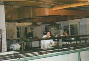 ![]() ここはビバーク地で夕食を取るための町のレストラン。おや、さっきのロシア美人。ここでも歓迎の黒パンです。 | ![]() ハイ、チューボーですよ!おばちゃんが笑顔で迎えてくれました。でも、このときすでに夜11時。レストランとしては早いところ閉めたいところなのでしょう。事実、次の日、朝食の用意は遅れていましたよ(笑)。 | ![]() ちょいと薄暗いレストランで夕食。メニューはパンとボルシチとハンバーグみたいな(?)でした。質素ではありましたが船のメニューと違って、本場のロシアの味ですね! | |