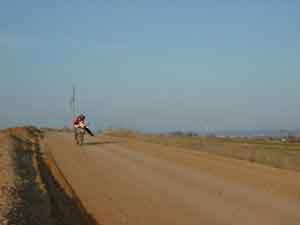 ![]() 最終レッキでコースが確認できなかったために、当初のルートから変更となっての後半。畑の中のダートが続きます。それにしても、あいかわらず土ぼこりが・・・。ライダーは#17CRM濱嵜さん。 | ![]() はいポーズ!サンキュ!みんな飛ばして行くけど、オレって写真撮りまくり・・。もともとスタート遅いのにこんなにのんびりしているとは。現時刻ロシア時間で夜7時54分、大体9時頃日没です。ライダーは#5丸田さんでしょうか?(BigタンクのXRです) | ![]() ハンカ湖に行くはずが、日没のため全員コンボイでそのままビバーク地の体育館へ。ということで、誰一人としてハンカ湖を拝むことができなかった・・。そりゃないぜ!でも、体育館で迎えてくれたのはロシア美人! | |