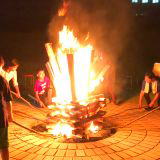 ![]() キャンプファイヤーの炎やペンライトの光を囲み親睦を深める |