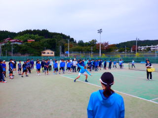 10月11日(土)に「スポーツ教室inハマラインパーク(ソフトテニス編)」が開催され、中学生、高校生109名が参加しました。
