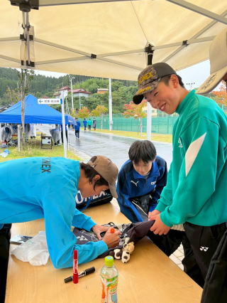 最後の選手と参加者の交流タイムでは、試合中の前衛後衛のそれぞれの場面でも立ち位置について質問がありました。講習会終了後は小松選手のサインに長蛇の列でした。