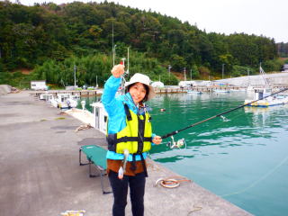 仕掛けを垂らし、10分、20分・・・反応なし。30分、40分・・・ヒット!小アジが釣れましたが、なんと釣ったのはスタッフ。(おい!)
